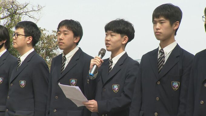 お披露目会が開かれた17日、遊覧船の案内所前には、少し緊張した面持ちの生徒たちの姿がありました。
