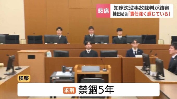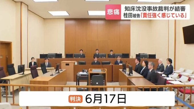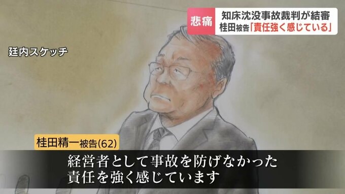 来週で発生から4年となる北海道知床半島沖の観光船沈没事故の裁判は、17日結審しました。運航会社社長の桂田精一被告(62)は最終陳述で、「事故を防げなかった責任を強く感じている」と述べました。
