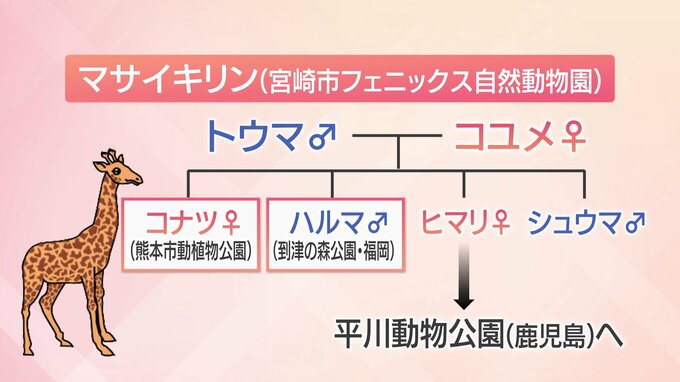 宮崎市フェニックス自然動物園のマサイキリン「ヒマリ」が、繁殖のため、鹿児島に旅立つことが決まりました。