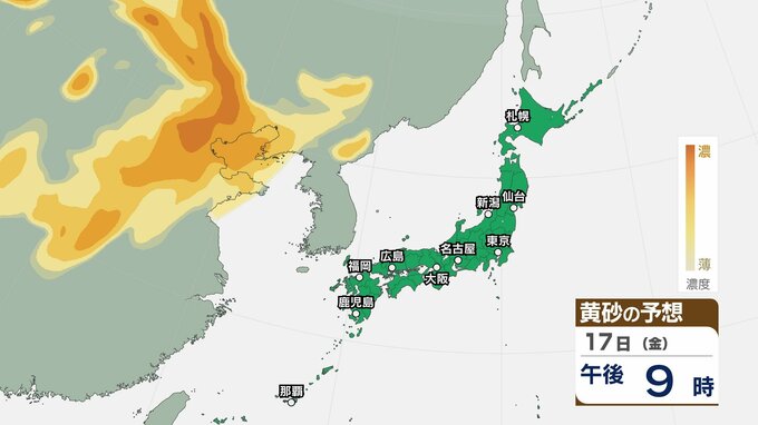 【黄砂情報】19日(日)に「日本列島」に飛来か…東北・北海道の一部地域で影響の可能性 17日(金)~20日(月)黄砂シミュレーション【気象庁 17日現在】 RSK山陽放送 2026年4月17日(金) 17:14 国内 天気 17日(金) ▶17日(金)~20日(月)黄砂シミュレーション画像