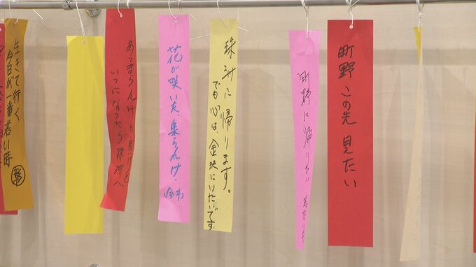 大野紘乃キャスター「みなさんが書いているのは能登の現状や今の思いを書いた短冊です。」