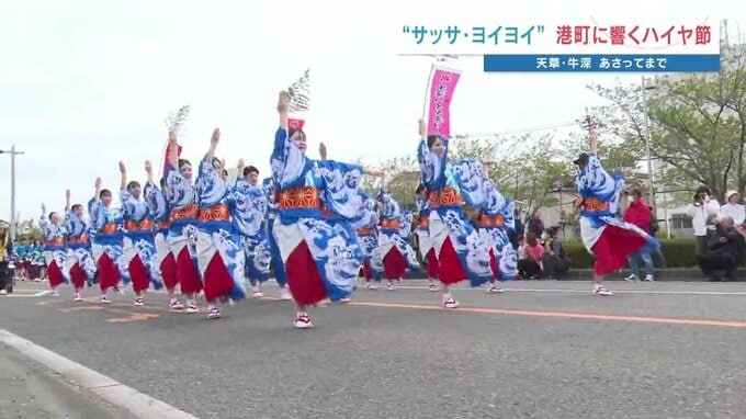 熊本県天草市の港町では「牛深ハイヤ祭り」が4月17日開幕し、大勢の見物人で賑わっています。牛深ハイヤ祭りは、今年で54回目を迎えました。最初のイベントは、牛深ハイヤ大橋での総踊りです。午後3時、園児たちの…