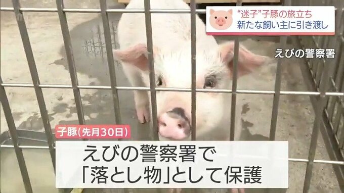 先月、宮崎県えびの市の路上で見つかり、警察署に「落とし物」として保護されていた子豚が、17日、新たな飼い主へ引き渡されました。