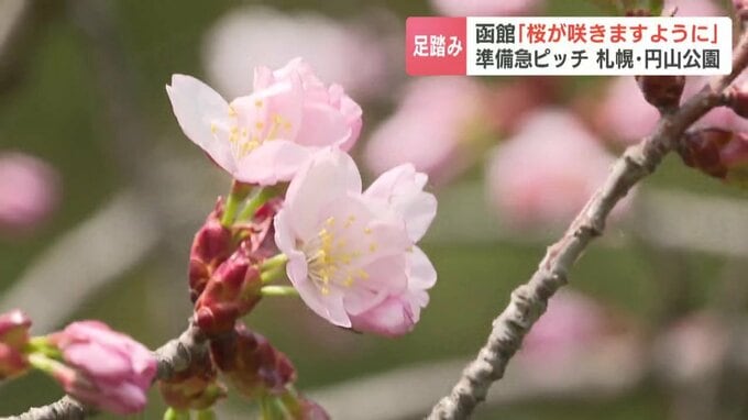 4日前、北海道に上陸した桜前線は、ちょっと足踏みをしているようですが例年よりも早い開花予想に札幌の桜の名所は準備に追われています。17日の最高気温が5月上旬並みの15.4℃を観測した函館です。麻原衣桜記者「…