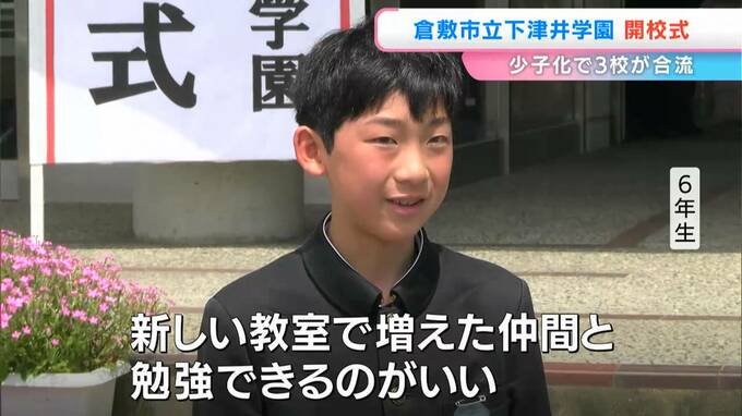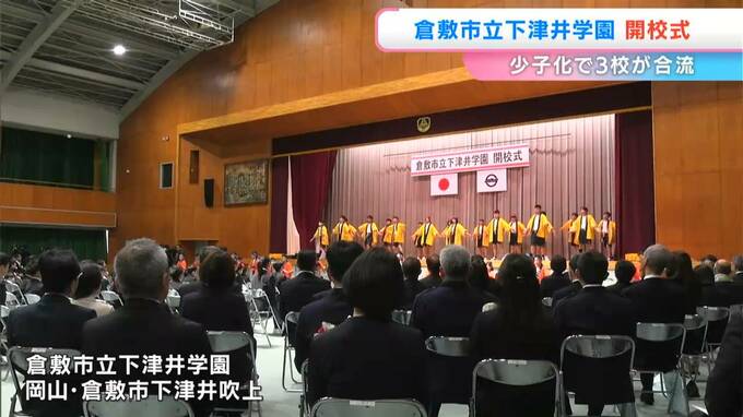 岡山県倉敷市下津井地区に設置された小中一貫の義務教育学校で開校式が行われました。エリアで少子化が進むなか、3校が統合です。