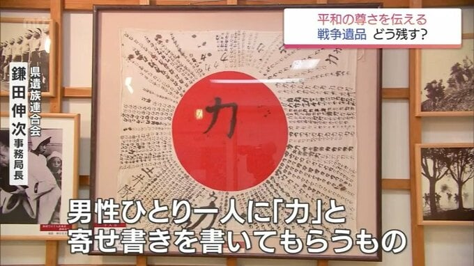 「(兵士に)男性千人の力を借りるということで、男性ひとり一人に『力』と寄せ書きを書いてもらうもの、これが残っているのは少ない、全国的にも」