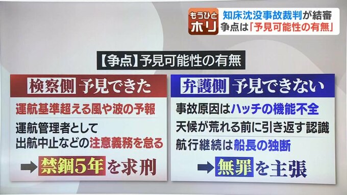 ▼運航会社の社長で、安全統括管理者の桂田被告は、業務上過失致死の罪に問われています。争点は、桂田被告が事故の発生を予測できたかどうかの「予見可能性の有無」です。