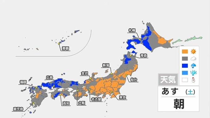 あす18日(土)は沖縄、西日本や北日本を中心に雨が降りやすいでしょう。外出の際に雨が降っていなくても、折りたたみ傘があるとよさそうです。一方、関東や東海は日ざしに恵まれて、過ごしやすい陽気が続くでしょう。こちらは日傘があるとよさそうです。
