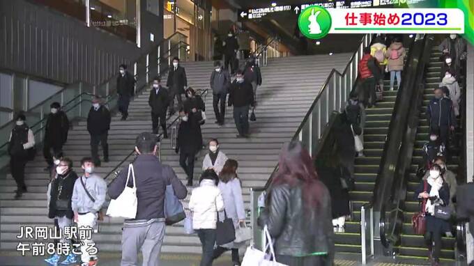 正月休みも終わり、いつもの通勤風景が戻ってきた岡山市中心部です。街では「連休で鋭気を養い職場に向かう人」「正月気分が抜けないといった人」など様々です。