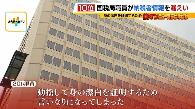 なぜ国税局職員は『納税者情報』を漏洩させてしまったのか? 20代の大阪国税局職員と警察名乗る男 2時間やりとりの詳細は… 毎日放送 2026年4月18日(土) 09:00 国内 「身の潔白を証明するために言いなりになってしまった」 職員は「いきなりフルネームを言われ、畳みかけるように事件の嫌疑がかけられていると言われ、警察手帳を画面越しに見せられて信用した。動揺して、身の潔白を証明するために、言いなりになってしまった」と話しているということです。
