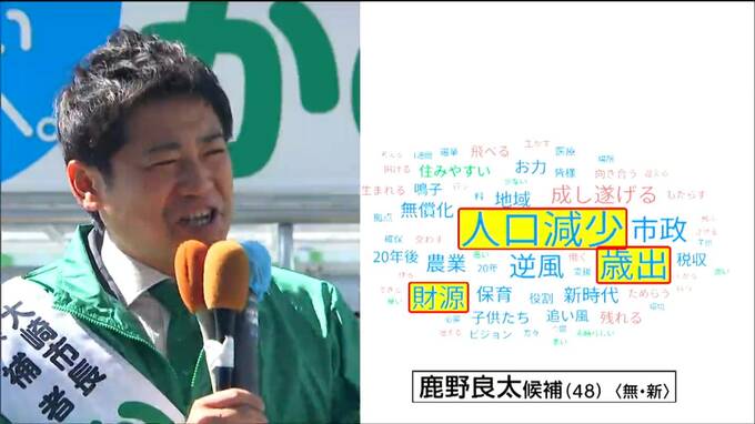 「人口減少」を緩やかにし、地域を維持、発展させる必要性を訴え、次いで「歳出」や「財源」が大きくなりました。