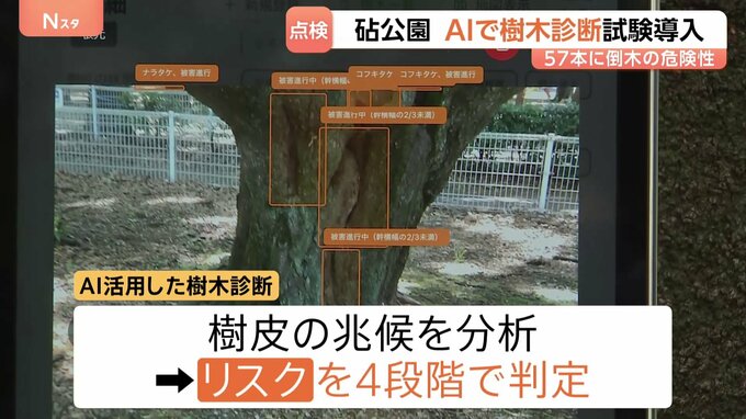 先月から倒木が相次いでいる東京・世田谷区の砧公園で、きょうから東京都がAIを活用した樹木診断を試験的に始めました。世田谷区の都立砧公園では、先月から桜やコナラなどあわせて5本の倒木が相次ぎ、1人のけが人…