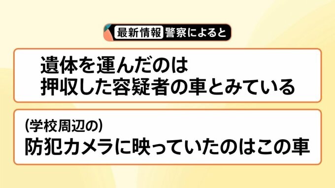 また、車については移動手段として使用していますので、車についた土などを押収するため。それから、車内で犯行があったのではないかということから車を押収したということです。