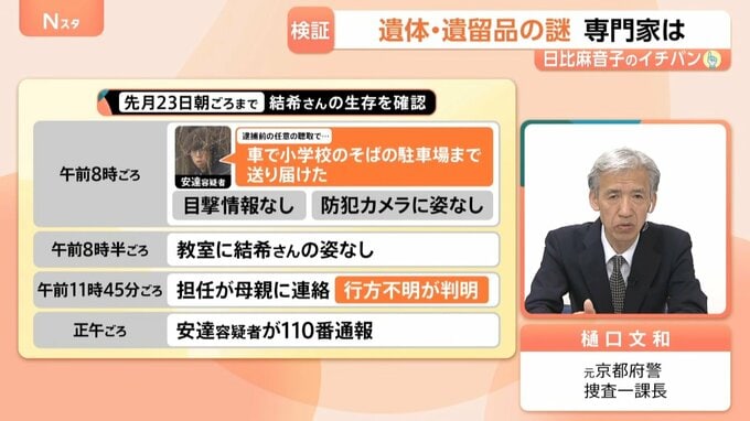 結希さんをどこから車に乗せたか、なぜ遺棄しなければならなかったのか、その状況などを供述させることが必要です。