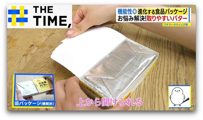 「お客様調査では箱でバターを保存している方が4割以上。取り出しやすい・閉めやすい・中身がわかりやすいところがリニューアルの大きなポイント」