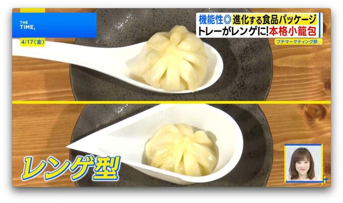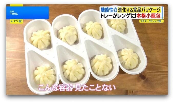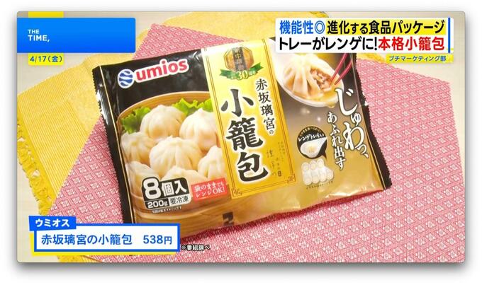 3月発売の冷凍食品「赤坂璃宮の小籠包」(ウミオス/8個入・538円※番組調べ)は、“トレー”が進化した商品。