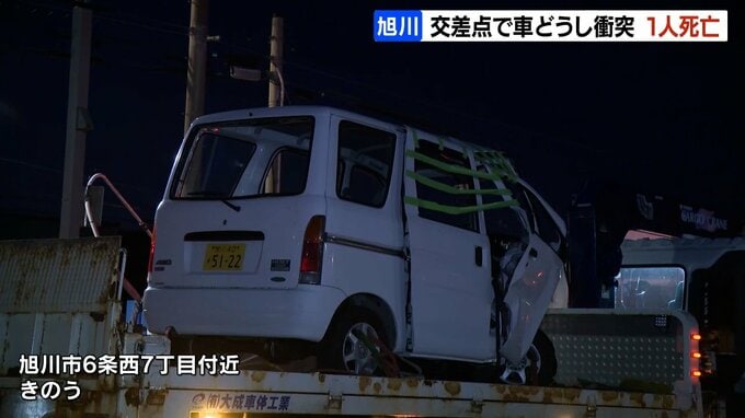 4月17日午後、北海道旭川市の交差点で車同士が衝突し、軽ワゴン車を運転していた高齢の女性が死亡しました。