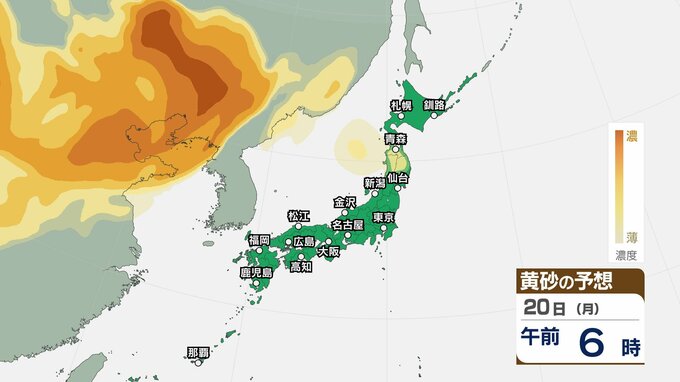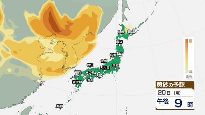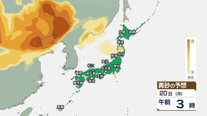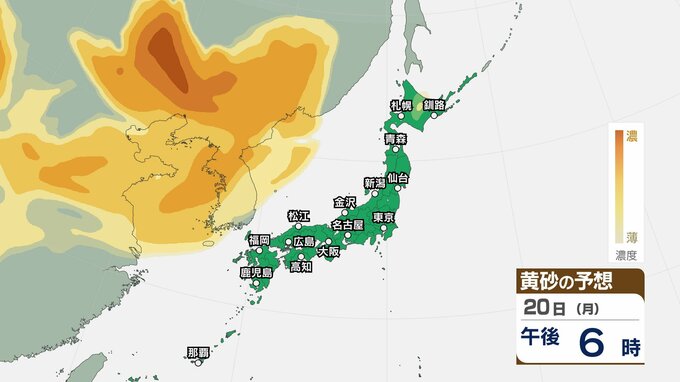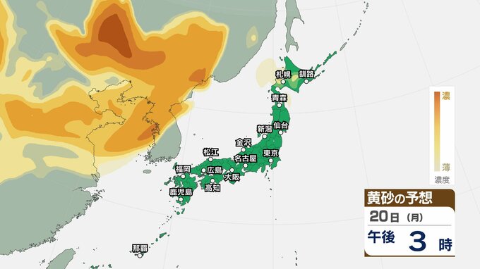 【黄砂情報】21日(火)に向け中国地方含む「日本列島」に飛来か…18日(土)~21日(火)黄砂シミュレーション【気象庁 18日現在】 RSK山陽放送 2026年4月18日(土) 12:00 国内 天気 20日(土) 18日(土)~21日(火)黄砂シミュレーション 18日(土)~21日(火)黄砂シミュレーション