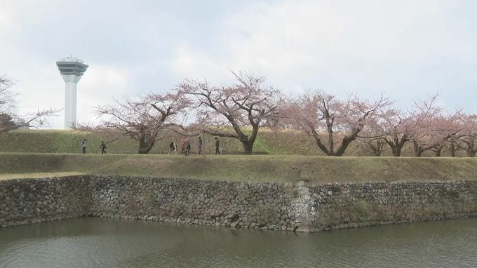 開花の基準となるソメイヨシノの標本木がある函館の五稜郭公園。