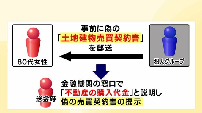 犯人グループは、金融機関への「言い訳用」として事前に偽の「土地建物の売買契約書」を女性に郵送していました。