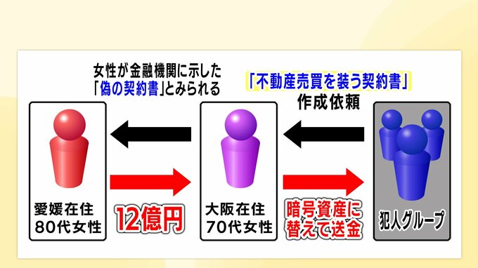 大阪の女性は指示通り、振り込まれた12億円を暗号資産に替えて詐欺グループへ送金させられていました。
