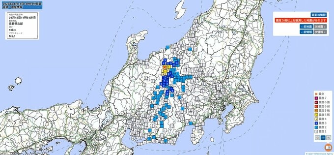 長野県北部では、午後1時20分ごろにも大町市で震度5強を観測する地震があったばかりです。