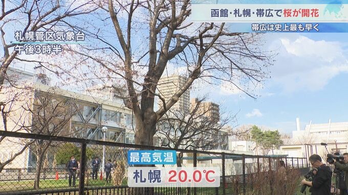 日中の最高気温が今年初めて20度に達した札幌市でも、ソメイヨシノの開花が観測されました。去年より5日、平年より13日早く史上2番目タイの早い開花です。