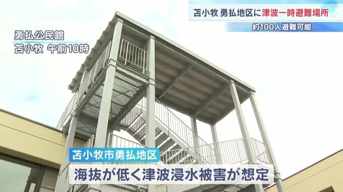 苫小牧市は、勇払地区の公民館の屋上を津波の一時避難場所として整備しました。太平洋に面した苫小牧市の勇払地区は海抜が低く、津波の浸水被害が想定されています。市は、大規模な地震で避難が間に合わなかった住…