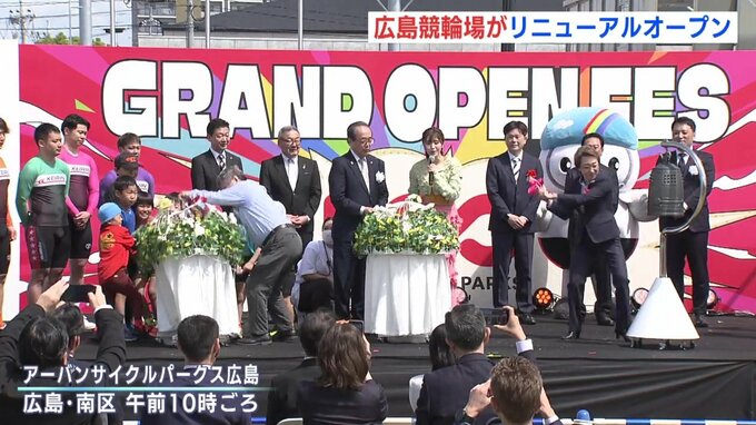 16日午前に開かれたオープン記念のセレモニーには、競輪選手のほか、広島市の松井一実市長や、アンバサダーの塚本恋乃葉さんなどが出席しました。