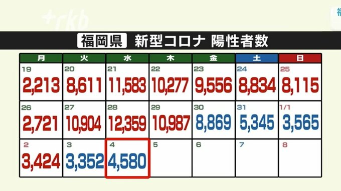 福岡県では4日、新たに4580人の新型コロナ陽性と19人の死亡が確認されました。正月休みの影響もあってか今年に入り4日連続で5000人を下回っています。◆発表自治体別の内訳北九州市 1127人福…