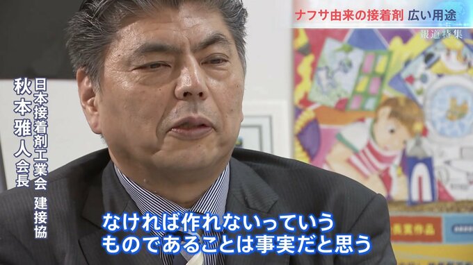 「(建築用の接着剤は)建築系の現場で使う『床・壁・天井』。内装の床とか壁とか天井を貼るような接着剤が量的には多い。あとは自動車関係も接着剤を使うし、航空機や船にも使われている。なければ作れないっていうものであることは事実だと思う」
