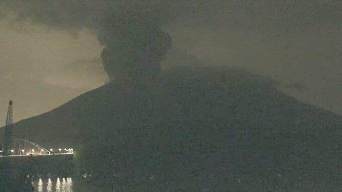 気象台によると、桜島の南岳山頂火口で18日午後11時30分に爆発的噴火があり、噴煙が火口から2300mの高さまで上がりました。