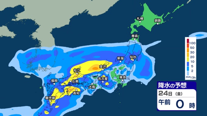 【 今後の雨 】西日本では20日(月)にかけて落雷や局地的な激しい雨に注意 週の後半は警報級大雨の恐れ【19日(日)~24日(金)午後3時の雨シミュレーション・19日正午更新】 新潟放送 2026年4月19日(日) 12:00 24日(金)午前0時~午後3時の雨のシミュレーション