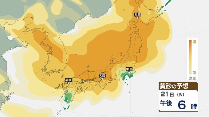 【黄砂情報】あす20日(月)から「日本列島」に飛来か…広い範囲で影響の可能性 19日(日)~22日(水)黄砂シミュレーション【気象庁 19日現在】 RSK山陽放送 2026年4月19日(日) 09:18 国内 天気 黄砂が大陸からやってくる? ▶【画像をみる】黄砂はいつ、どこに来る?黄砂シミュレーション 気象庁の黄砂解析予測図によりますと、あす20日(月)日本列島に黄砂が飛来する見込みだということです。21日(火)午後から日本列島の広い範囲で飛来が予想されています。