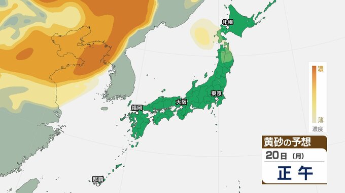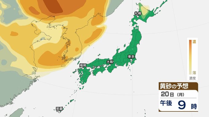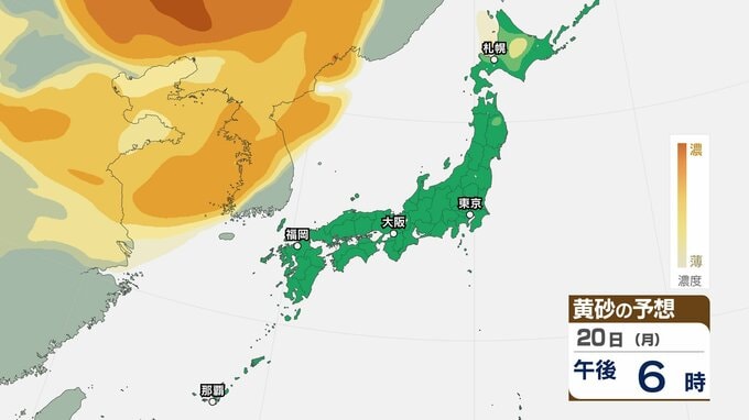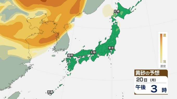 【黄砂情報】あす20日(月)から「日本列島」に飛来か…広い範囲で影響の可能性 19日(日)~22日(水)黄砂シミュレーション【気象庁 19日現在】 RSK山陽放送 2026年4月19日(日) 09:18 国内 天気 20日(月)午後 【画像】 ▶【画像】19日(日)~22日(水)黄砂シミュレーション