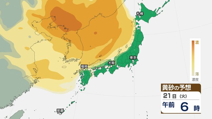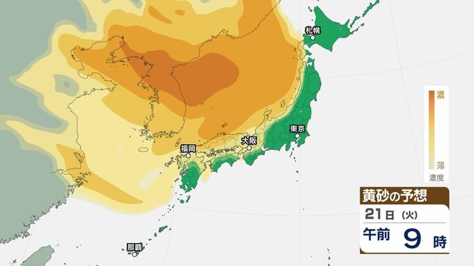 【黄砂情報】あす20日(月)から「日本列島」に飛来か…広い範囲で影響の可能性 19日(日)~22日(水)黄砂シミュレーション【気象庁 19日現在】 RSK山陽放送 2026年4月19日(日) 09:18 国内 天気 21日(火) ▶【画像】19日(日)~22日(水)黄砂シミュレーション ▶【画像】19日(日)~22日(水)黄砂シミュレーション
