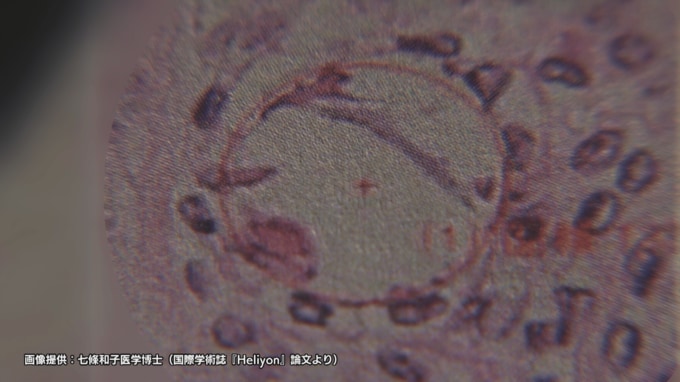さらに、女性の肺がんの組織内では、細胞が死滅して円状に抜け落ちたような空洞が複数確認され、七條氏はこれを「デスボール」と名付けました。