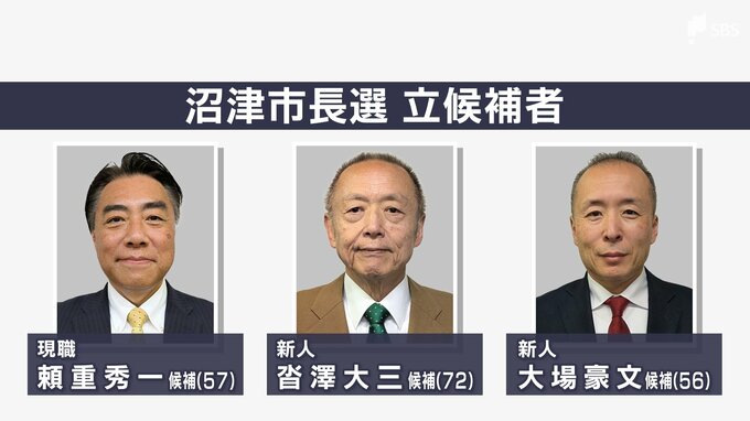 任期満了に伴う沼津市長選挙は4月19日に告示され、4月19日正午現在、現職と新人2人のあわせて3人が立候補の届け出を済ませました。沼津市長選挙に立候補したのはいずれも無所属で、届け出順に▼現職で3期目を目指…