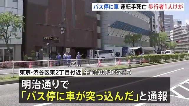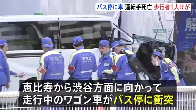 東京・渋谷区の明治通りできょう(19日)午前、ワゴン車がバス停に衝突する事故があり、ワゴン車を運転していた男性が死亡したほか、歩行者1人が軽傷です。