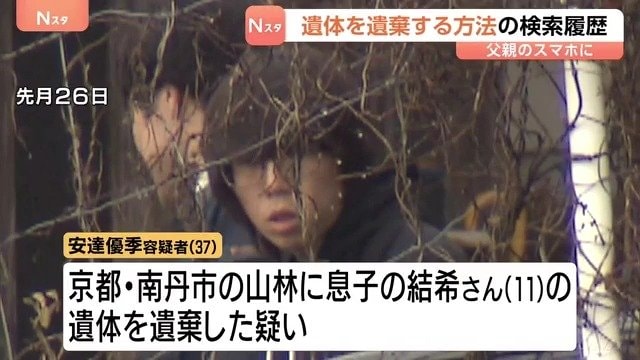 京都府南丹市の山林に小学生の息子の遺体を遺棄したとして父親が逮捕された事件で、父親のスマートフォンに遺体を遺棄する方法の検索履歴があったことがわかりました。