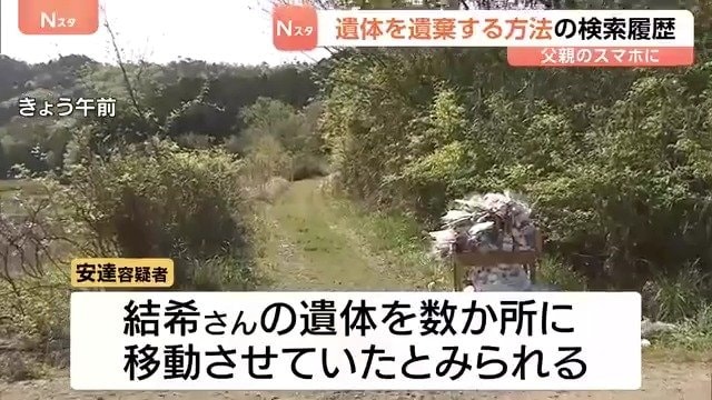 安達容疑者は結希さんの遺体を数か所に移動させていたとみられていて、警察は発覚しにくくさせる方法を調べていたとみて捜査しています。