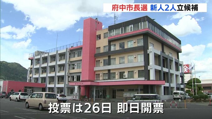 府中市長選挙をめぐっては、現職が今期限りの退任を表明しており、選挙戦となるのは8年ぶりです。財政状況の悪化をどう克服するか論戦が交わされる模様です。投票は26日で即日開票されます。