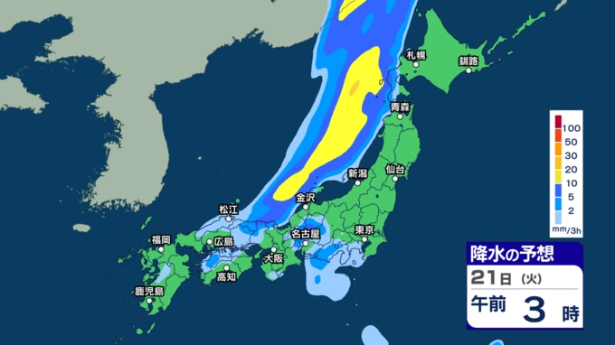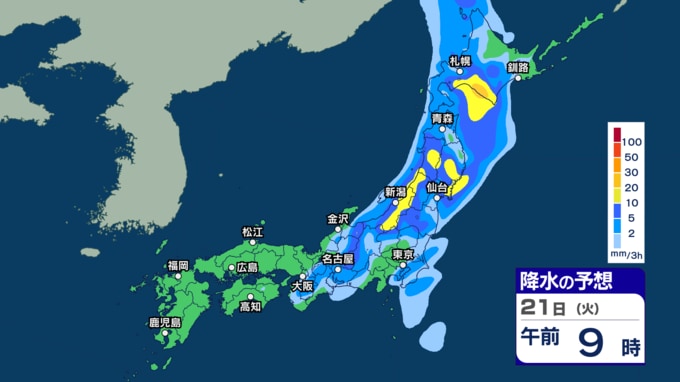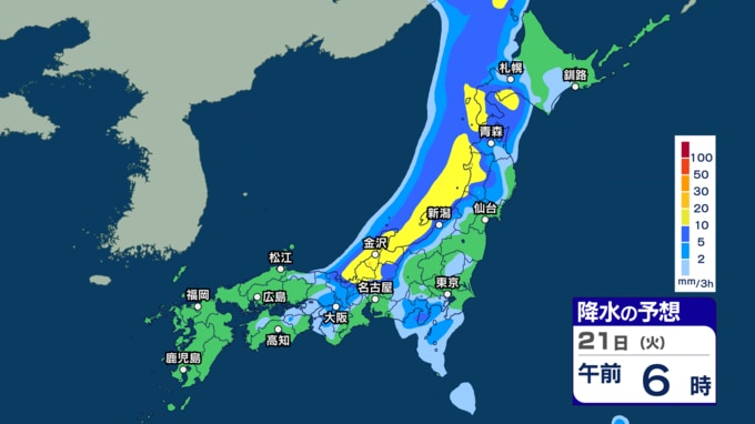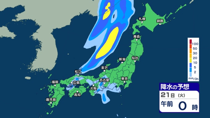 【 今後の雨 】西日本で雷を伴う激しい雨の所も 週後半の23~24日は各地で雨強まり西日本では警報級大雨の恐れ【20日(月)~24日(金)の雨シミュレーション・19日午後9時更新】 新潟放送 2026年4月19日(日) 21:00 21日(火)の雨のシミュレーション