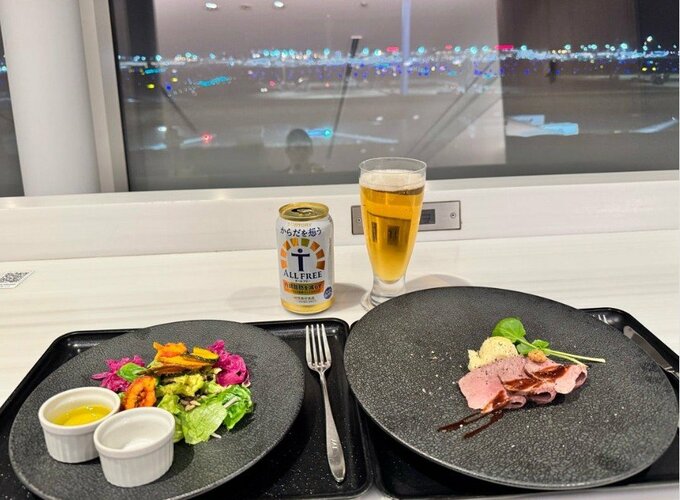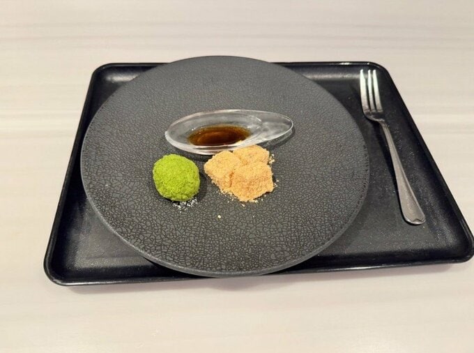 4月16日の出発前夜、薬丸さんはJALラウンジで「今夜は…JALラウンジでディナー」と投稿。デザートの抹茶おはぎとわらび餅を堪能し、「行ってきます」と旅立ちを報告しました。