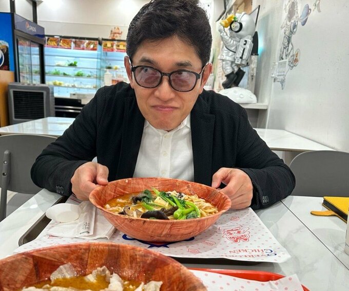 夕食を抜いた同日の夜は、遅い時間に妻と夜食へ。「車を走らせて辿り着いたのは一件だけ営業していた麻辣担のお店」で、木製ボウルに盛られたラーメンを味わい、「有り難い一杯でした」と感謝の言葉を添えました。