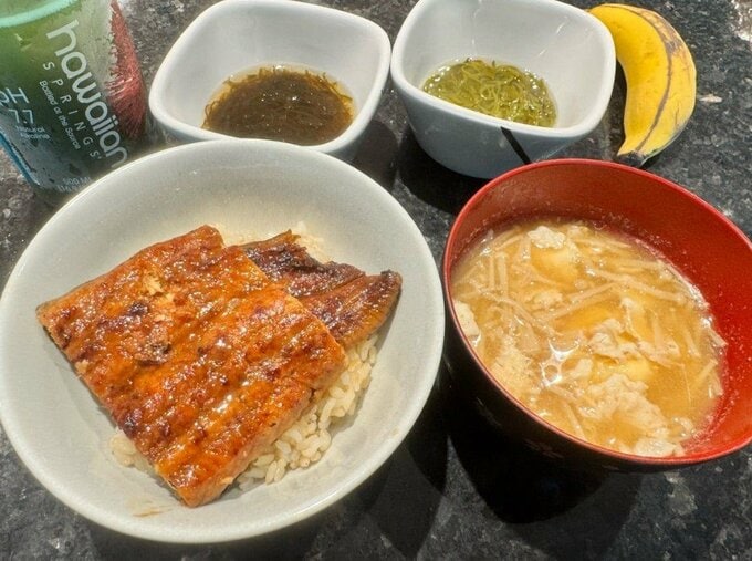 4月19日の朝も「いつもルーティン」として、ウォーキングとサウナを実践。朝食は「完全和食の妻の朝食」と、鰻丼に味噌汁、もずく、めかぶというメニューを選んだ妻について「ハワイらしさゼロ(笑)」とユーモアを込めつつ、「ふっくらしてとても美味しい鰻でした」と報告しました。