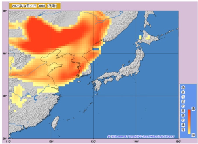 【黄砂情報】20日(月)から「日本列島」に飛来か 広い範囲で影響おそれ【20日(月)~22日(水)黄砂シミュレーション】気象庁の黄砂解析予想図