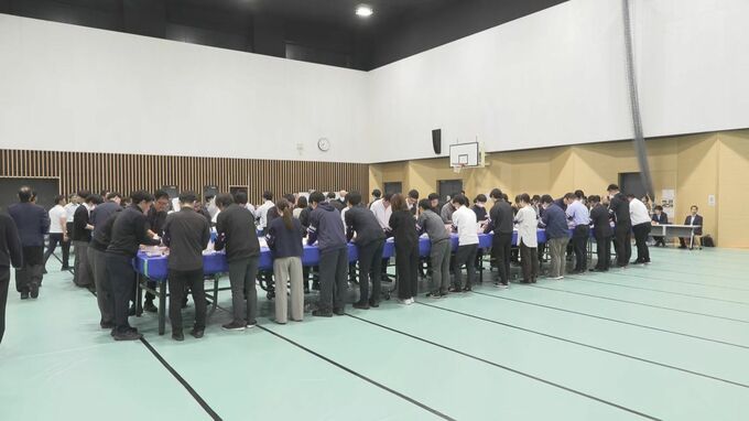 投票は午後7時に締め切られ、午後8時半から開票作業が行われています。