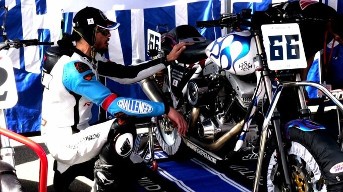 クラブマンロードレースは、車種によって様々なグループとクラスに分かれています。長瀬さんは、アメリカ製クラシックバイクをルールの範囲内で組み上げて走りを競い合うクラスで、1960年代後半から80年代前半に製造された「ショベルヘッド」というエンジンを積む車両による「FSCRクラス」に出場するとのこと。