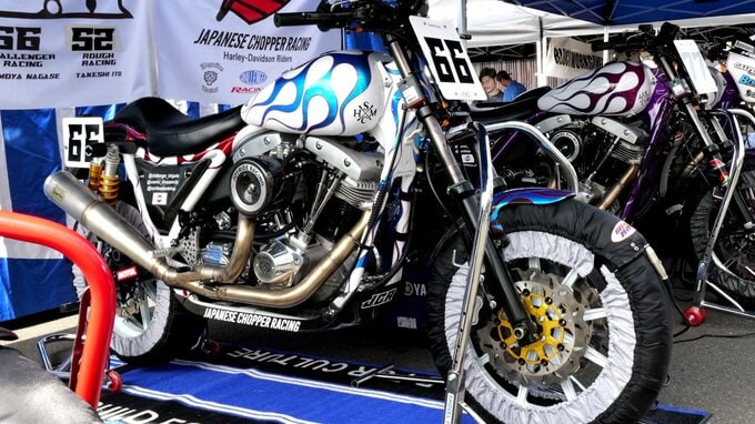 長瀬さんはJCRというユニットを組んでおり、その中の「Challenger Racing」から出場。「JOYRIDE SPEED SHOP」の西田裕選手・「ROUGH MOTORCYCLE 」の伊藤毅選手と共に「JCR」のブースで入念に準備していました。